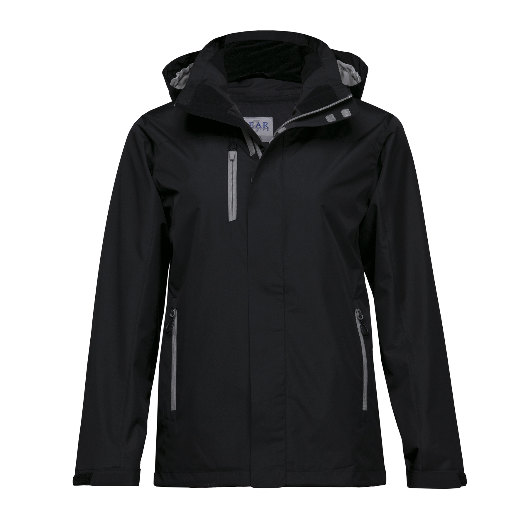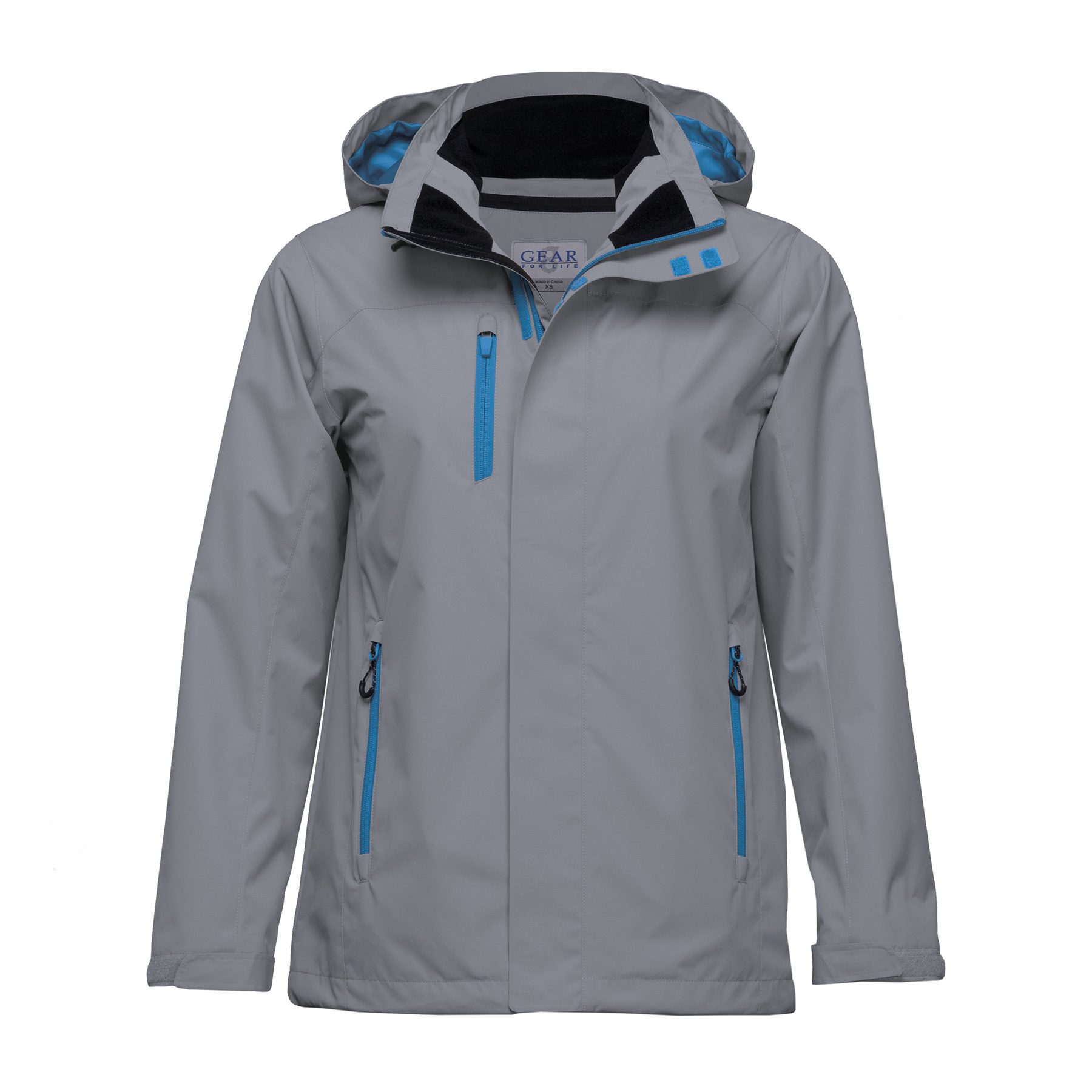 Velcro tab cuff adjusters and draw cord on hem