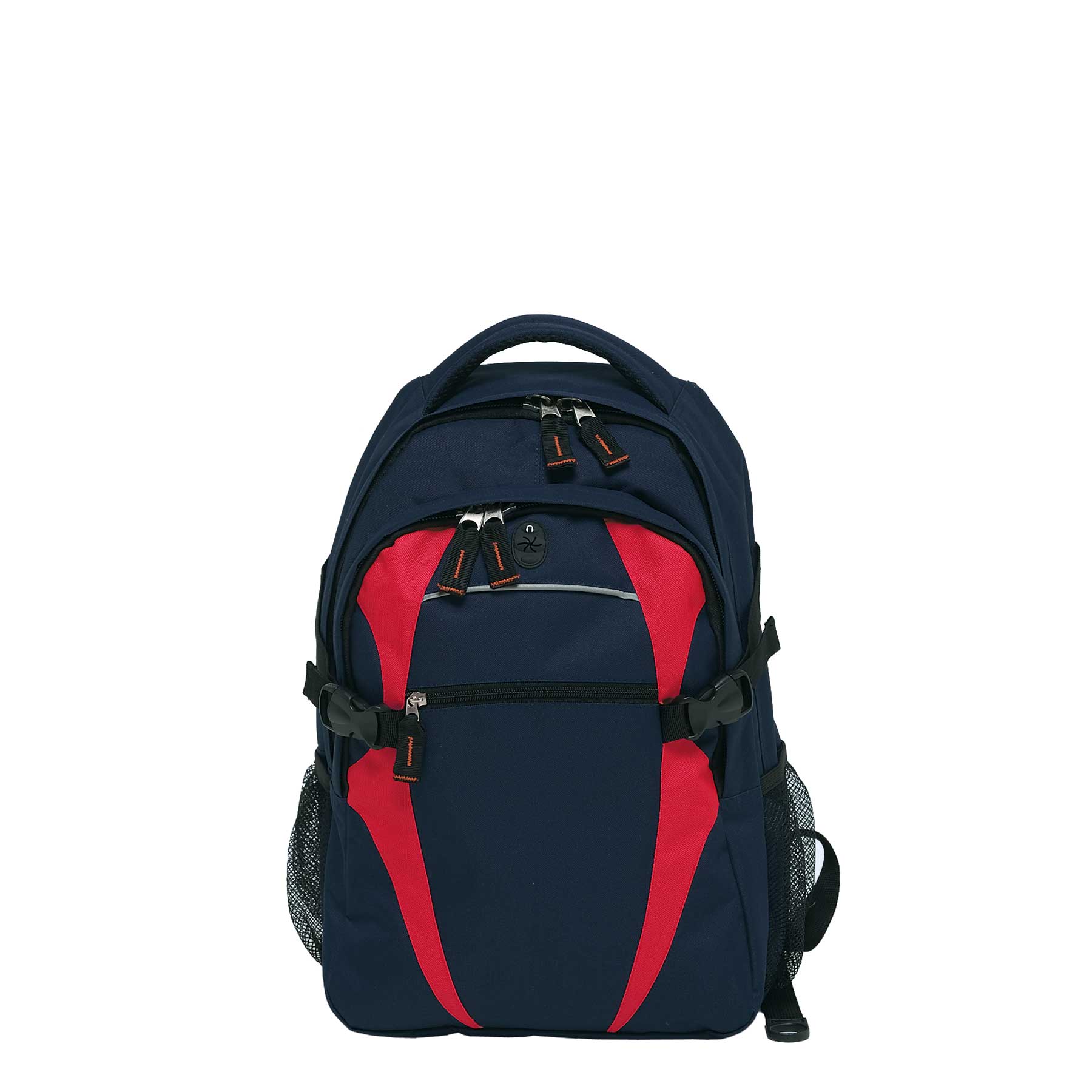 Quick stash zippered front pocket with reflective piping